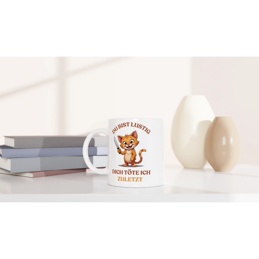 Lustige Katzen Tasse – Freches Cartoon Motiv mit Messer