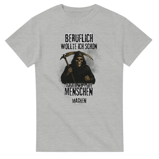 Sensenmann T-Shirt Herren – Beruflich wollte ich immer was mit Menschen machen – Dunkler Humor Spruch